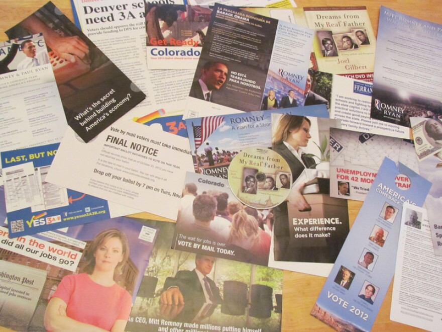 Update 6:44 p.m.: Morning Edition host Erin O'toole is hanging out and celebrating a friend's birthday at Crabtree Brewing in Greeley. She tweeted that the tasting room toasted the end of political ads. I think Colorado can toast an end to scenes like this in the mailbox: