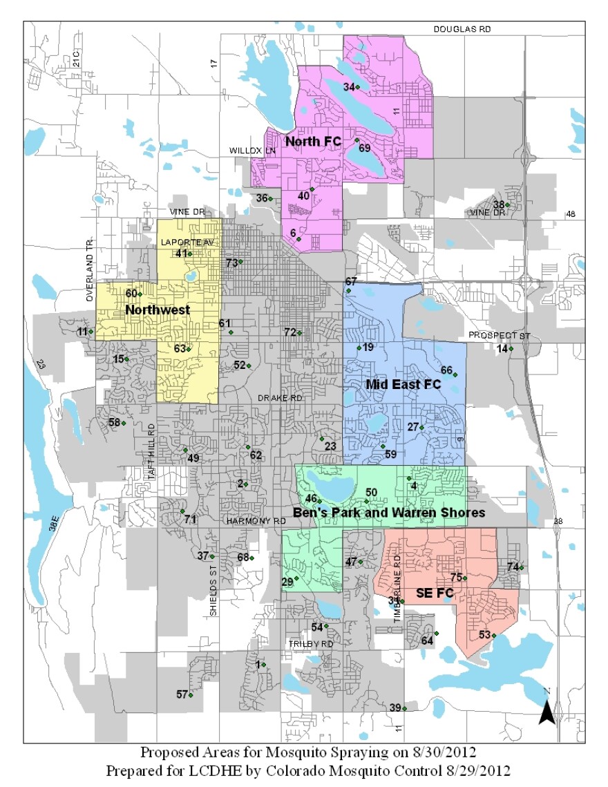 The action comes at the request of the Larimer County Department of Health and Environment. In a press release Director Dr. Adrienne LeBailly said “the infection rate is growing, and I am concerned about the risk this presents, particularly over the holiday weekend. Based on the data, I am recommending spraying in targeted areas which present the greatest risk.”
