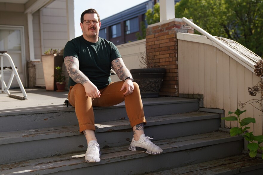 Scott Luciano sits for a portrait on his front porch on May 4, 2019, in Portland, Oregon.