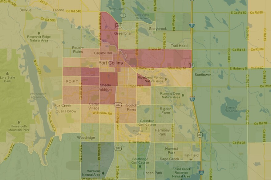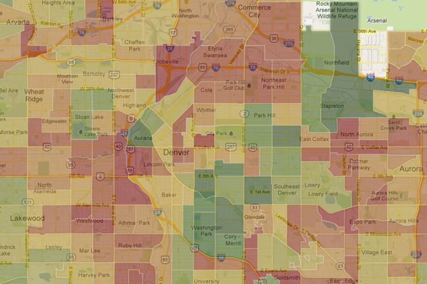 Here’s a few Colorado cities and their median household income. Warmer colors signify poorer areas, cooler colors more affluent.