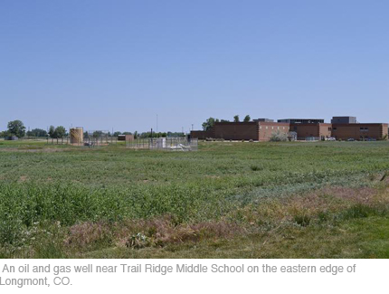 In the mid afternoon heat, Peter Champe, a fit forty-something in a casual shirt and shorts, surveys a scene becoming more and more common in his hometown of Longmont. It’s a recently drilled oil and gas well, several hundred yards from Trail Ridge Middle School on the city’s eastern edge.
